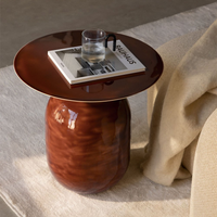 Apvalus pagalbinis staliukas NEREARO Ø50 cm – minimalistinis, su suapvalintomis formomis ir išraiškingu sendinto emalio efektu. Puikiai tinka šalia sofos ar fotelio – knygoms, puodeliui ar smulkmenoms, kai norisi daiktus turėti po ranka ir kartu įnešti charakterio į interjerą.