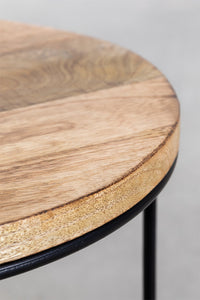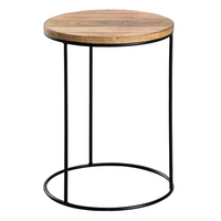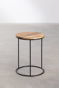 Apvalus šoninis staliukas TARDAA iš mango medienos (30 cm skersmens) – elegantiškas ir modernus akcentas, praturtinantis interjerą. Rankomis suvirinta geležinė konstrukcija užtikrina stabilumą, o mango medienos stalviršis suteikia natūralumo.