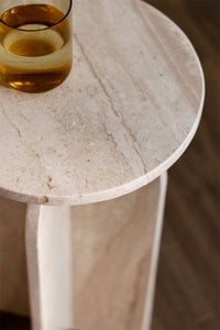 Apvalus šoninis staliukas GLEANA – marmuras, kompaktiškas ir modernus akcentas interjerui.