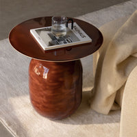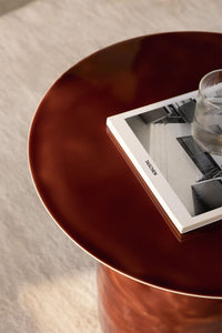 Apvalus pagalbinis staliukas TINVU – minimalistinių linijų geležinis stalas su sendinto emalio efektu. Puikiai tinka pasidėti knygai, puodeliui ar smulkiems daiktams šalia sofos ar fotelio.