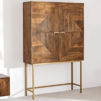 Aukšta komoda BORKU iš mango medžio su žalvario atspalvio kojomis ir rankenomis – 4 durys ir 8 lentynos užtikrina maksimalų talpumą.