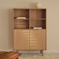 Aukšta komoda TINVUTIA – universalus, talpus ir lengvai pritaikomas baldas valgomajam, svetainei ar pereinamoms zonoms. Dvi tylaus uždarymo durys, fiksuotų ir reguliuojamų lentynų derinys, ąžuolinės kojelės su grindų apsaugomis.