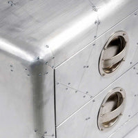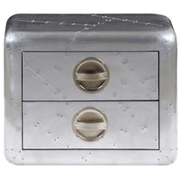 Šis pilotų žurnalinis staliukas yra pagamintas iš masyvios medienos, o paviršius plakiruotas poliruotomis aliuminio plokštėmis bei plieniniais varžtais, todėl yra ypatingai tvirtas. Užapvalinti kampai ir retro stiliaus stalčiaus rankenos suteikia staliukui išskirtinumo.