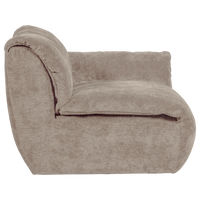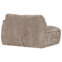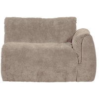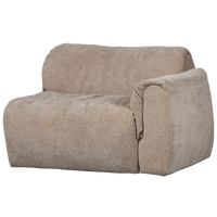 Vienvietis „Baggy“ elementas su porankiu dešinėje. Smėlio spalvos 3D veliūrinis audinys, minkštas ir patvarus.MEDŽIAGA