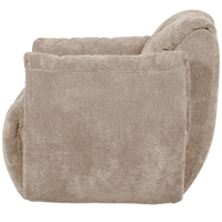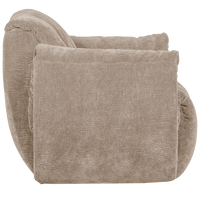 Švelnios smėlio spalvos fotelis su minkšta ir patvaria 3D tekstūra. Sukamas, lengvai prižiūrimas ir ilgaamžis baldas svetainei.