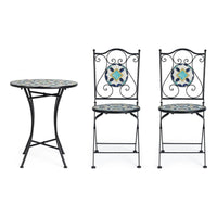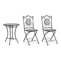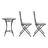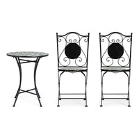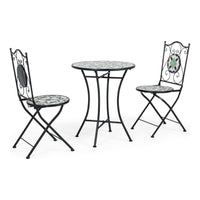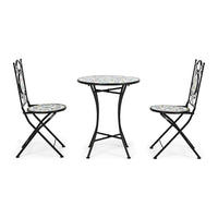 Komplektas pagamintas iš aukštos kokybės plieninio rėmo, skirtas naudoti lauke, padengto epoksidiniu milteliniu būdu. Stalviršis ir kėdžių sėdynės yra pagamintos iš keramikos, kas užtikrina ilgaamžiškumą ir lengvą priežiūrą. Kėdės yra sulankstomos, todėl užima mažai vietos, kai nereikalingos. Komplektas idealiai tinka 2 žmonėms.