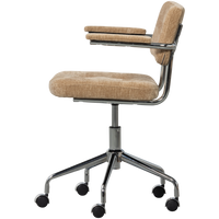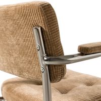 Stilinga biuro kėdė. Apmušta minkštu briaunotu audiniu (100% PES). Sukiojama ir reguliuojamo aukščio. Medžiaga: Mūsų Auckland briaunotas audinys yra minkštas, patogus, pasižymi specialiu briaunotu raštu. Martindale: 30 000. Matmenys: Aukštis: 87 cm. Plotis: 54 cm. Gylis: 60 cm. Sėdynės aukštis (aukščiausia/žemiausia padėtis): 56 cm / 42 cm. Svoris: 9,7 kg. Keliamoji galia: 125 kg. Priežiūra: Lengva valyti dulkių siurbliu su baldų šepečiu. Dėmes nedelsiant nusausinkite. Netrinkite! Daugumą skysčių galima pašalinti drungnu vandeniu. Nenaudokite cheminių medžiagų.