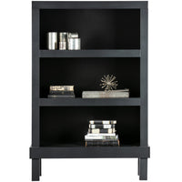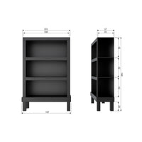 Atvira spinta Bonk, pušis, matinė juoda. Paprastas ir praktiškas atviras stelažas su trimis plačiomis lentynomis, tinkantis aksesuarams ar knygoms.