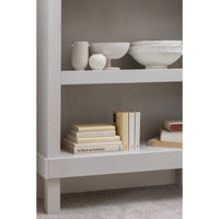 Spinta BONK atvira, miglos pilka – atvira pušies spinta su 3 lentynomis; minimalistinis siluetas ir pakankamai vietos aksesuarams ar knygoms.