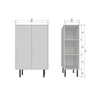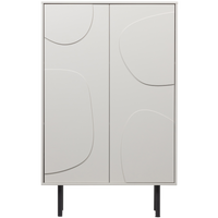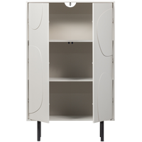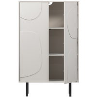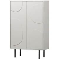Spinta CADIZ, miglos pilka – tvirta spinta su dekoruotomis durimis. Šiuolaikiškas dizainas, juodos kojelės ir žaisminga medienos tekstūra sukuria išskirtinį akcentą.