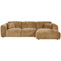 1-vietė sofa CLOUD, dešinė, Honey Yellow chenille – moderna, apvalių formų, su dekoratyvinėmis pagalvėlėmis. Chenille audinys minkštas ir atsparus trinčiai.