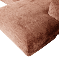 1-vietė sofa CLOUD, dešinė, Terra chenille – patogi, apvalių formų, su dviem dekoratyviniais pagalvėlėmis. Luxus Chenille audinys (100% poliesteris), atsparus trinčiai.