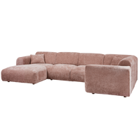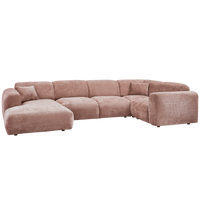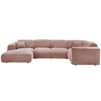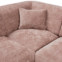 Kampinė sofa CLOUD, dešinė, Taupe/Pink chenille – erdvi, apvalių formų, su dviem dekoratyvinėmis pagalvėlėmis. Luxus Chenille audinys minkštas, atsparus trinčiai.