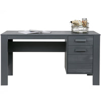 Rašomasis stalas DENNIS, plieno pilka – tvirtas, su integruotais 2 stalčiais ir erdviu stalviršiu; šiauštas pušies paviršius suteikia natūralų, gyvą raštą.