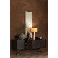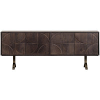 Komoda Draw, mango mediena, riešutmedžio spalva. Charakteringa komoda su 3D raštu duryse, kabelių angomis ir unikaliu dizainu.