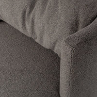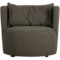 Fotelis EXPLORE – tvirtas ir patogus, aptrauktas rudu bouclé audiniu; jaukus akcentas interjere.