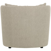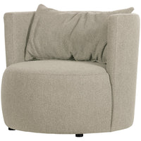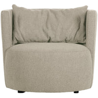 Fotelis EXPLORE – natūralaus atspalvio bouclé; solidus komfortas ir lengva priežiūra.