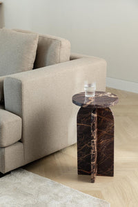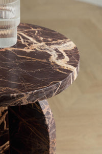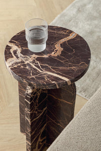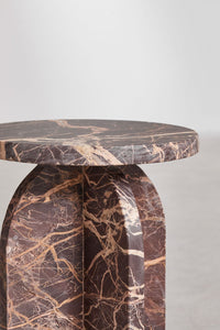 GRAHAM šoninis staliukas iš raudono marmuro – išskirtinis dizaino akcentas. Sodri spalva ir natūralūs marmuro raštai suteikia charakterio bet kuriam interjerui. Apvalus 30 cm skersmens stalviršis idealiai tinka knygai, gėlei ar kavos puodeliui. Dėl kompaktiško dydžio puikiai pritaikomas mažose erdvėse ar kaip papildomas baldas miegamajame ar svetainėje.