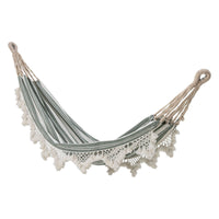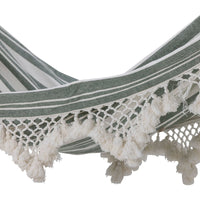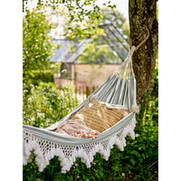 Hamakas CRUZ – tai puikus pasirinkimas jūsų sodui, sukuriantis jaukią atmosferą karštomis vasaros dienomis. Hamakas pagamintas iš 100% medvilnės žaliame atspalvyje, o šonuose yra smulkūs dekoratyvūs elementai, kurie suteikia papildomo žavesio. Tai stilingas ir komfortiškas baldas, kuris leis jums mėgautis poilsiu gamtoje.