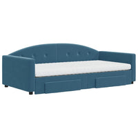 Ištraukiama lova su stalčiais, mėlyna, 100x200cm, aksomas