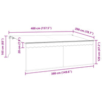 Ši moderni markizė yra puikus sprendimas tiems, kurie nori pagerinti savo lauko erdvę. Jos dydis 400 x 200 cm suteikia pakankamai šešėlio įvairioms veikloms, nuo susibūrimų su draugais iki ramybės akimirkų. Antracito spalva ir sraunus dizainas žavi, užtikrindami estetiką ir funkcionalumą lauko erdvėse, sukurtas tiek susibūrimams, tiek ramybėje.