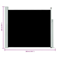 Ištraukiama šoninė kiemo pertvara, juodos spalvos, 100x300cm