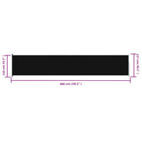 Ištraukiama šoninė kiemo pertvara, juodos spalvos, 117x600cm