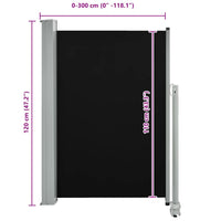 Ištraukiama šoninė kiemo pertvara, juodos spalvos, 120x300cm