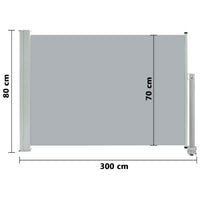 Ištraukiama šoninė kiemo pertvara, pilkos spalvos, 80x300cm
