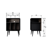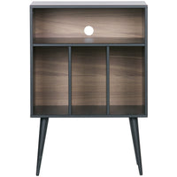 From the James series of the brand WOOOD is this very beautiful cabinet. Cabinet James (H 83 x W 60 cm x D 44 cm) is executed in matt black lacquered pine in combination with a MDF back with walnut print. The cabinet is specially designed to fit LP's in the 3 compartments at the bottom (H 35 x W 18 cm). The wide compartment at the top is designed to accommodate the amplifier, as a hole has been made in the back of the cabinet to allow your cords to pass through. Of course you can also use the box for other functions! Sideboard James is supplied as a kit with clear assembly instructions. For hard floors, place felt glides under the sideboard to prevent damage to the floor.