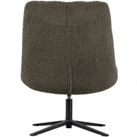 Fotelis JOB – minkštas žalias teddy audinys, juodos kojos; jaukumas ir modernus dizainas.
