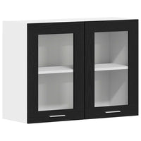 Juodas ąžuolo kabančio stiklo spinta 80x31x60 cm Pagaminta iš dirbtinės medienos