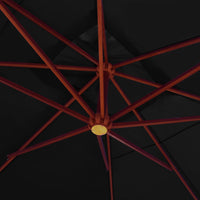 Kabantis skėtis nuo saulės su mediniu stulpu, juodas, 400x300cm