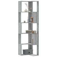 Kampinė knygų spinta, 5 aukštų, pilka, 50x50x179cm, mediena