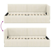 Kampinė lovos konstrukcija Kreminė 90 x 190 cm Aksomas