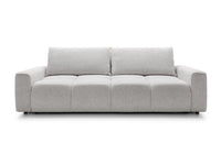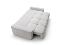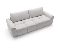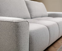 Pilkas struktūrinis audinys suteikia sofai solidumo ir universalumo – jis lengvai derinamas prie įvairių interjero sprendimų, yra malonus liesti ir atsparus kasdieniam naudojimui.