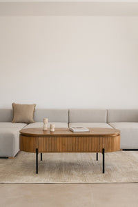 Stačiakampis kavos staliukas ADUMIA iš 100% mango medžio su tvirtomis metalinėmis kojomis – universalus ir stabilus, puikiai dera su kolekcijos baldais.