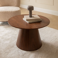 AMAOA apvalus kavos staliukas su MDF ir medžio faneruote – natūrali tekstūra, stabili bazė su kaištukais ir jaukus įvaizdis.