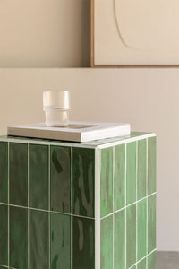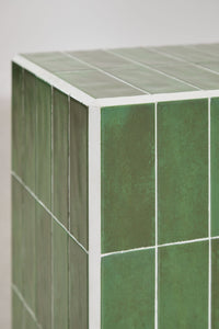 Kvadratinis staliukas BSENUOA – betoninė konstrukcija su matinėmis, šiltų atspalvių keraminėmis plytelėmis suteikia modernų, jaukų akcentą; felt padukai apsaugo grindis.