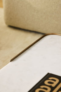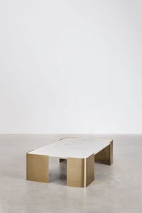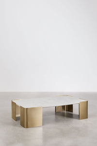 BSUNIIA stačiakampis kavos staliukas su natūraliu marmuru Banswara (blizgus) ir blizgiu nerūdijančiu plienu – skulptūrinės kojos ir galerinis įspūdis.