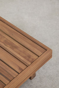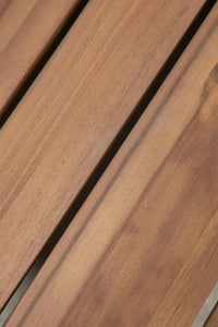 Kavos staliukas DDUMIA iš lakuotos akacijos – švarios linijos, šiltas raštas ir žema, stabili konstrukcija.