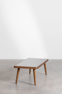 Kavos staliukas MLUARDA – cemento korpusas ir akacijos medienos akcentai; industrinė estetika su šilto medžio kontrastu.
