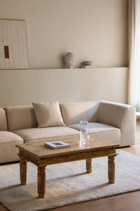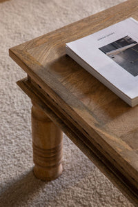 Kavos staliukas TLIAA iš mango medienos – tvirtas, rankomis dekoruotas baldas su apvaliomis kojomis. Tai puikus pasirinkimas suteikti svetainei rustiško ir natūralaus charakterio.