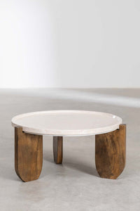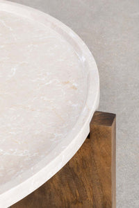 Kavos staliukas XTERUEA iš marmuro ir mango medienos – avangardiškas, elegantiškas akcentas. Blizgus marmuro stalviršis dera su tvirtomis mango medžio kojomis; puikiai tinka prie sofos ar fotelio.