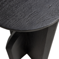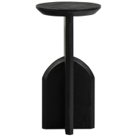 KIONI mažas šoninis staliukas – išskirtinio dizaino baldas iš akacijos medienos, dengtas matinės juodos spalvos danga. Stalviršio apvalumas ir originali kojų forma suteikia baldui solidų, bet kartu ir jaukų vaizdą. Šis staliukas puikiai tinka svetainėje, miegamajame ar prieškambaryje – kaip akcentinis interjero elementas.