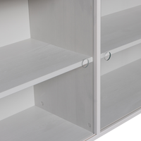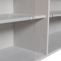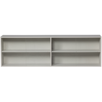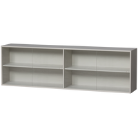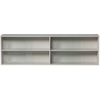 Priedas KLINK (viršutinė dalis), miglos pilka – stilinga viršutinė sieninės spintos dalis su grūdinto stiklo durimis; minimalistinis dizainas ir talpios lentynos.