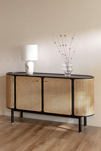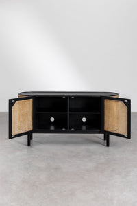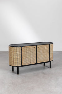 Komoda CDANEOA su ąžuolo faneruote ir pintomis rataninėmis durimis – 2 išimamos lentynos, filco padukai ir neslystančios juostos.