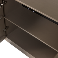 NOVA komoda iš pušies, su grafiniu paviršiumi, keturiomis durimis ir erdvia vidine laikymo sistema.