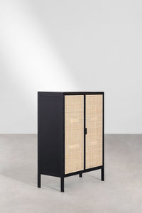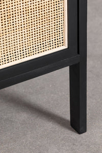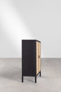 RSARE – komoda iš pušies su rataniniais fasadais; 3 vidaus lentynos, natūralus, lengvai derinamas dizainas.