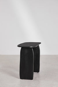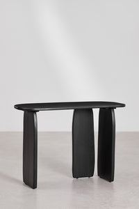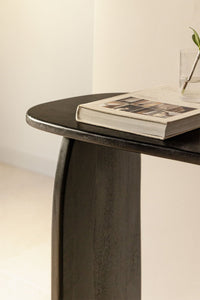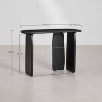 Konsolė ARGUS 110x45 cm – išskirtinio dizaino baldas, sujungiantis funkcionalumą ir estetiką. Abstrakti forma, trys subtiliai užapvalintos kojos ir lakuotas paviršius sukuria išraiškingą interjero akcentą. Tai baldas, kurį gali pastatyti prie sienos, po veidrodžiu ar naudoti kaip vietą dekoracijoms. Tvirta mango medienos konstrukcija užtikrina ilgaamžiškumą, o šilta juoda spalva suteikia prabangos pojūtį.